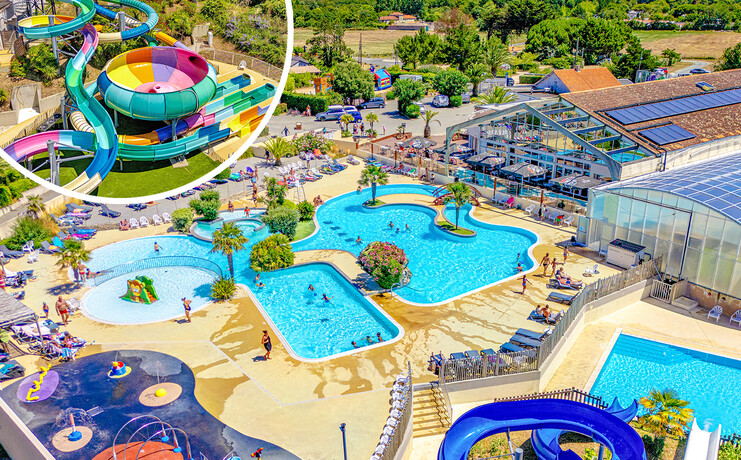Camping 5 étoiles doté d'un incroyable parc aquatique comprenant de grands bassins chauffés, des banquettes massantes, une zone balnéo relaxante et un pentaglisse. Pour les plus jeunes, un espace ludique aquasplash ainsi que deux bassins pour enfants (un en extérieur et l'autre dans la piscine couverte) sont spécialement aménagés !